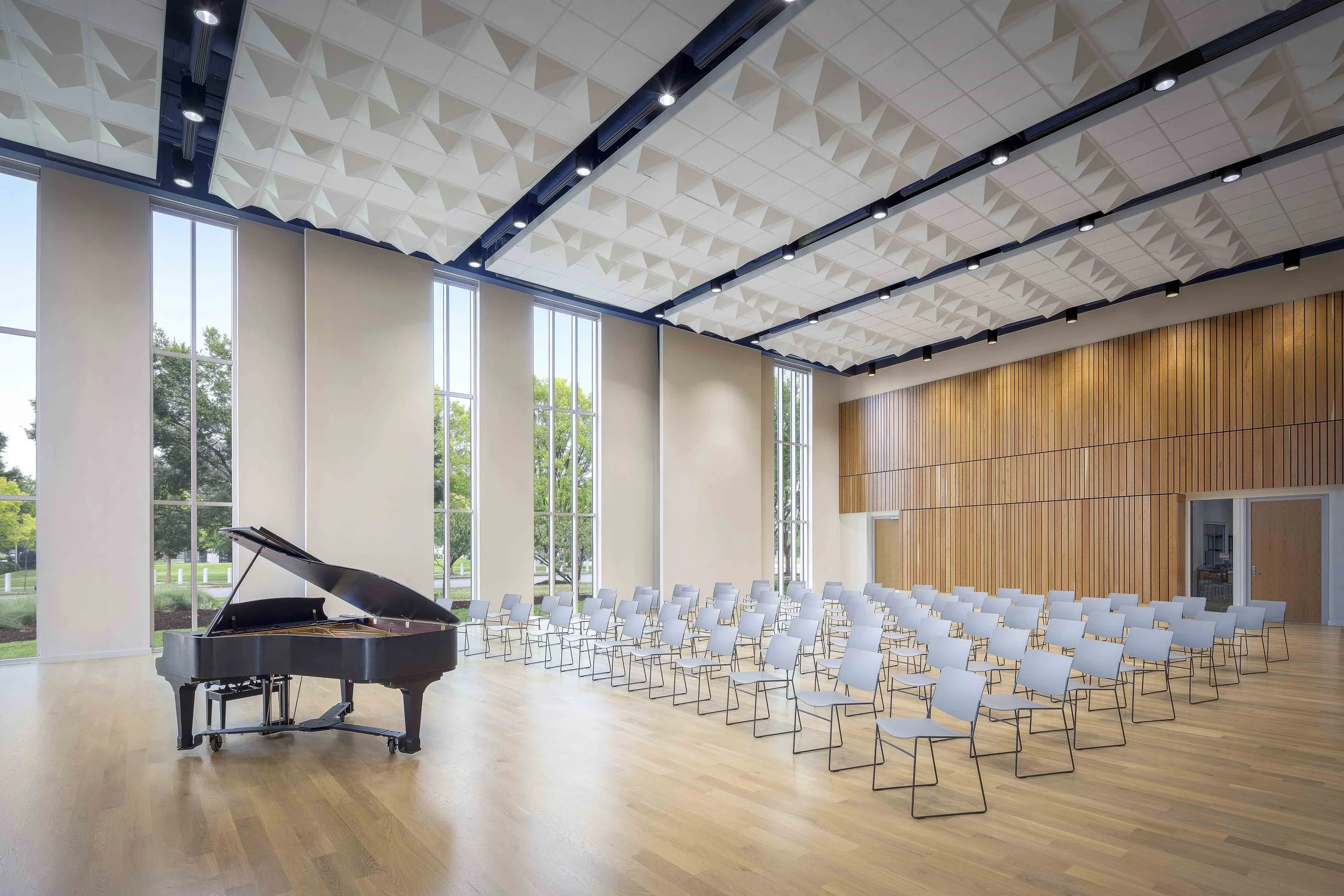 The new music center is a radically-welcoming hub of musical activity for all Arkansans, serving youth and adults of all ages with an array of musical offerings. The building provides access to music education, music performances, and music making to residents of all corners of the state through new spaces and a broadcast and recording studio. The new music center boasts contemporary features for children and adults that participate in programs, including music classrooms and practice spaces, ensuring a conducive environment for musical growth and creativity. The space includes Morgan Hall, which serves as a versatile space for rehearsals and concerts, fostering an immersive musical experience.